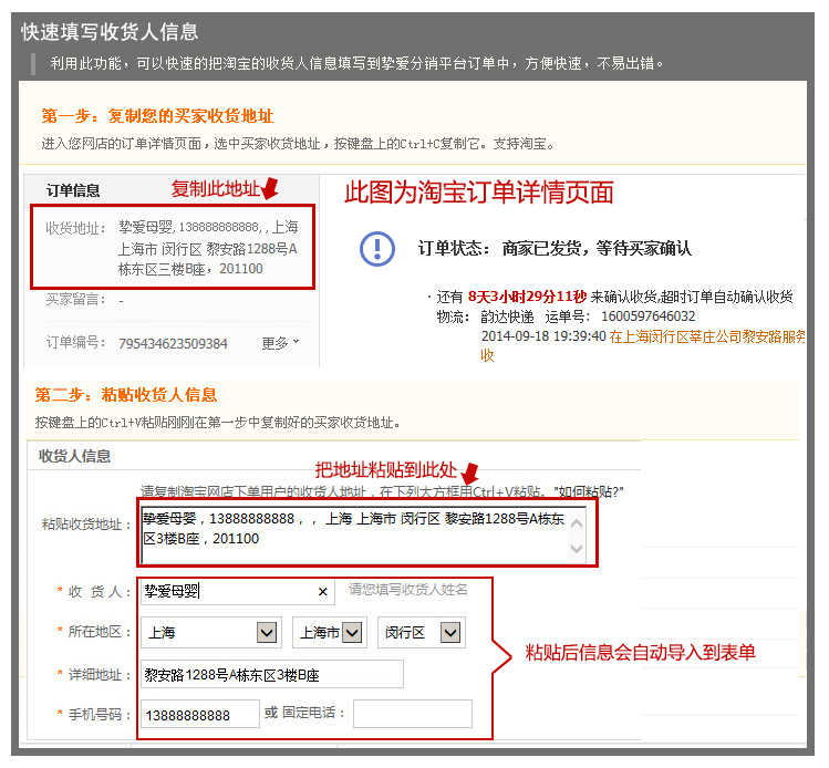(1)录入收货人信息,如何一次性复制、”粘贴收货人“所有信息?